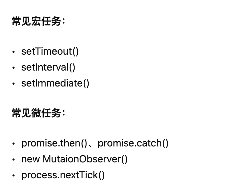- 备注: setImmediate 和 Process.nextTick() 在浏览器中是不存在的,因为浏览器中没有事件循环的概念,所以也就没有了这两个方法,在nodejs环境下才支持。
